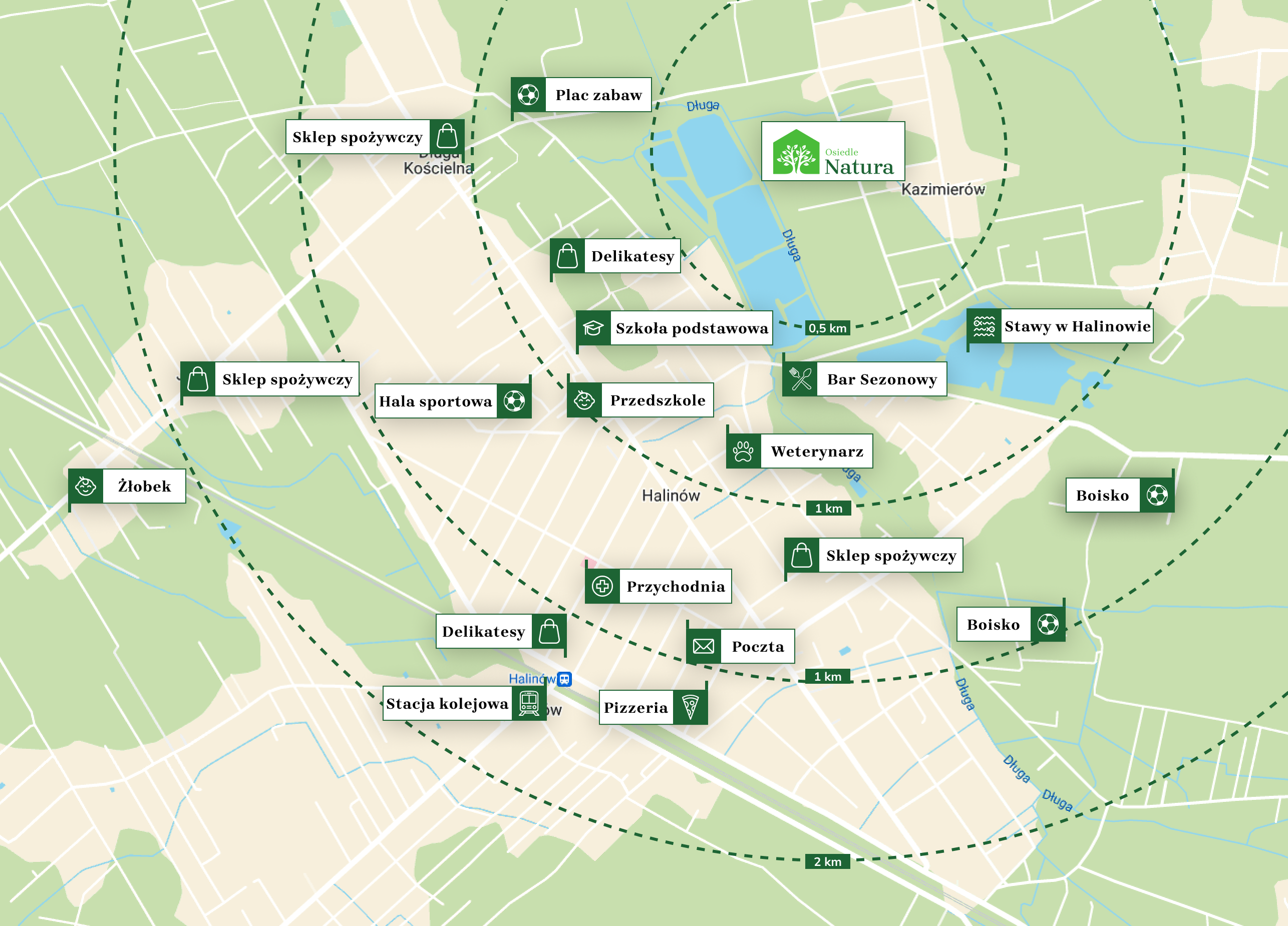 Co więcej, lokalizacja ta oferuje łatwy dostęp do natury – malownicze Stawy w Halinowie oddalone są o zaledwie kilka minut spacerem.